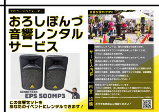 音響機材一式の持ち込みや不意の合間の時間繋ぎ等、現場対応力にもご期待ください。